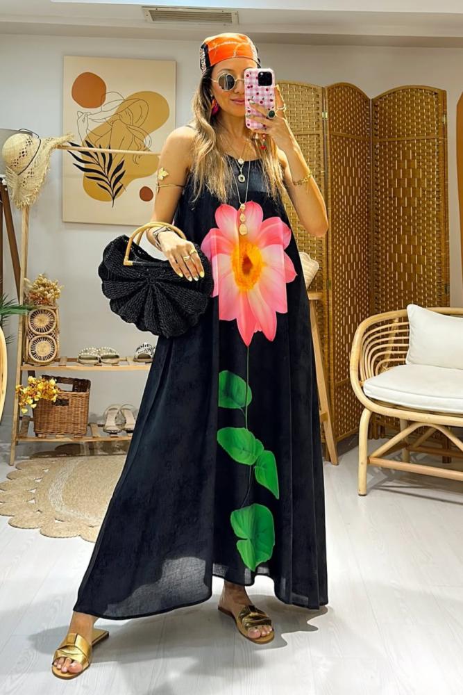 فستان قطن تركي يتميّز بنعومة فائقة وبرودة منعشة، طويل وواسع وساتر، بقصّة مريحة تمنحك إحساساً رائعاً بالأناقة والراحة في آنٍ واحد